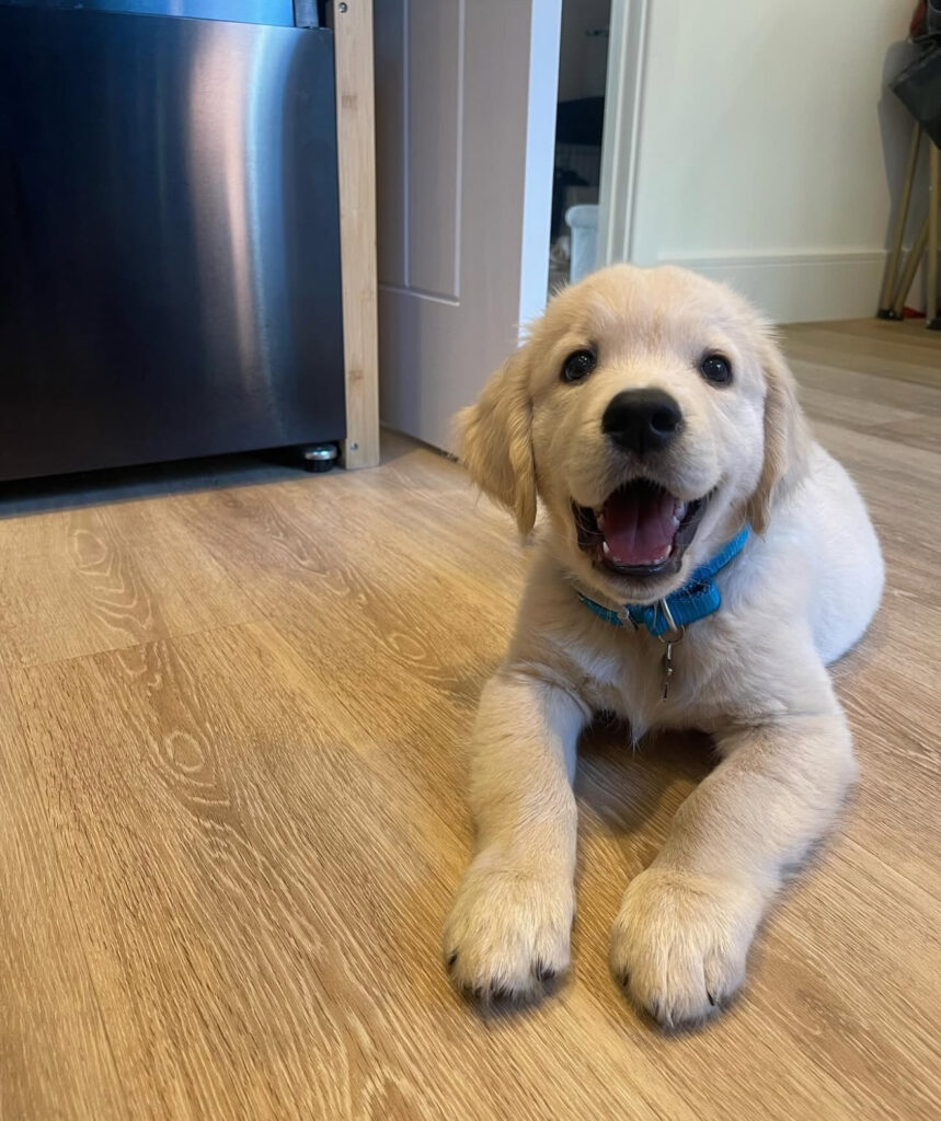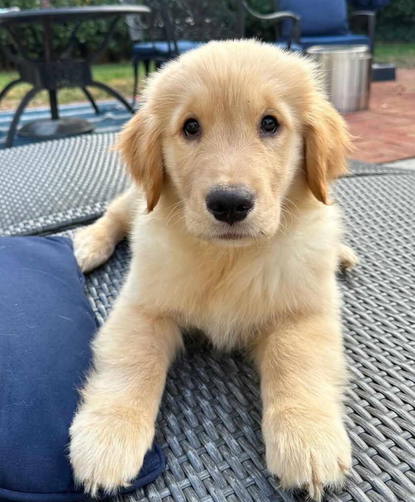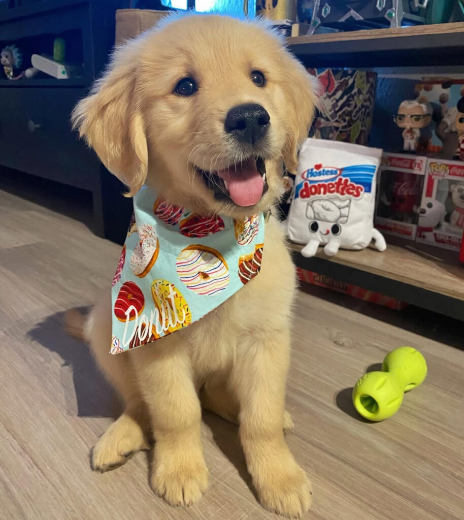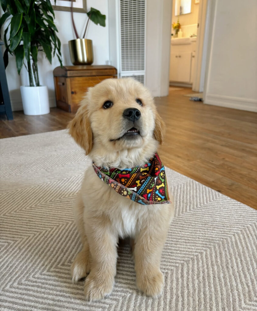 Goldens are prone to weight gain, so portion control is important. Divide their meals into two balanced feedings per day rather than free-feeding, and always provide access to fresh, clean water.